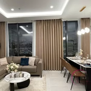 Phòng khách là khu vực có tính đại diện cao về thẩm mỹ và công năng. Rèm vải tại đây đảm nhiệm đồng thời ba vai trò: kiểm soát ánh sáng tự nhiên, tạo sự riêng tư và định hình phong cách nội thất.