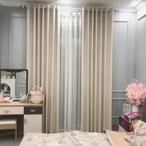 - Rèm vải 2 lớp: kết hợp giữa lớp vải dày bên ngoài và lớp voan mỏng bên trong. Cấu trúc này cho phép điều chỉnh linh hoạt ánh sáng, đồng thời tạo chiều sâu thị giác và tăng giá trị thẩm mỹ.