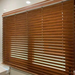 Rèm gỗ (rèm sáo gỗ) được làm từ gỗ tự nhiên hoặc gỗ công nghiệp cao cấp, có khả năng chống cong vênh, mối mọt. Với thiết kế gồm các thanh gỗ ngang có thể xoay lật linh hoạt, rèm gỗ giúp điều chỉnh ánh sáng hiệu quả, đồng thời mang lại vẻ đẹp mộc mạc, sang trọng cho không gian.
