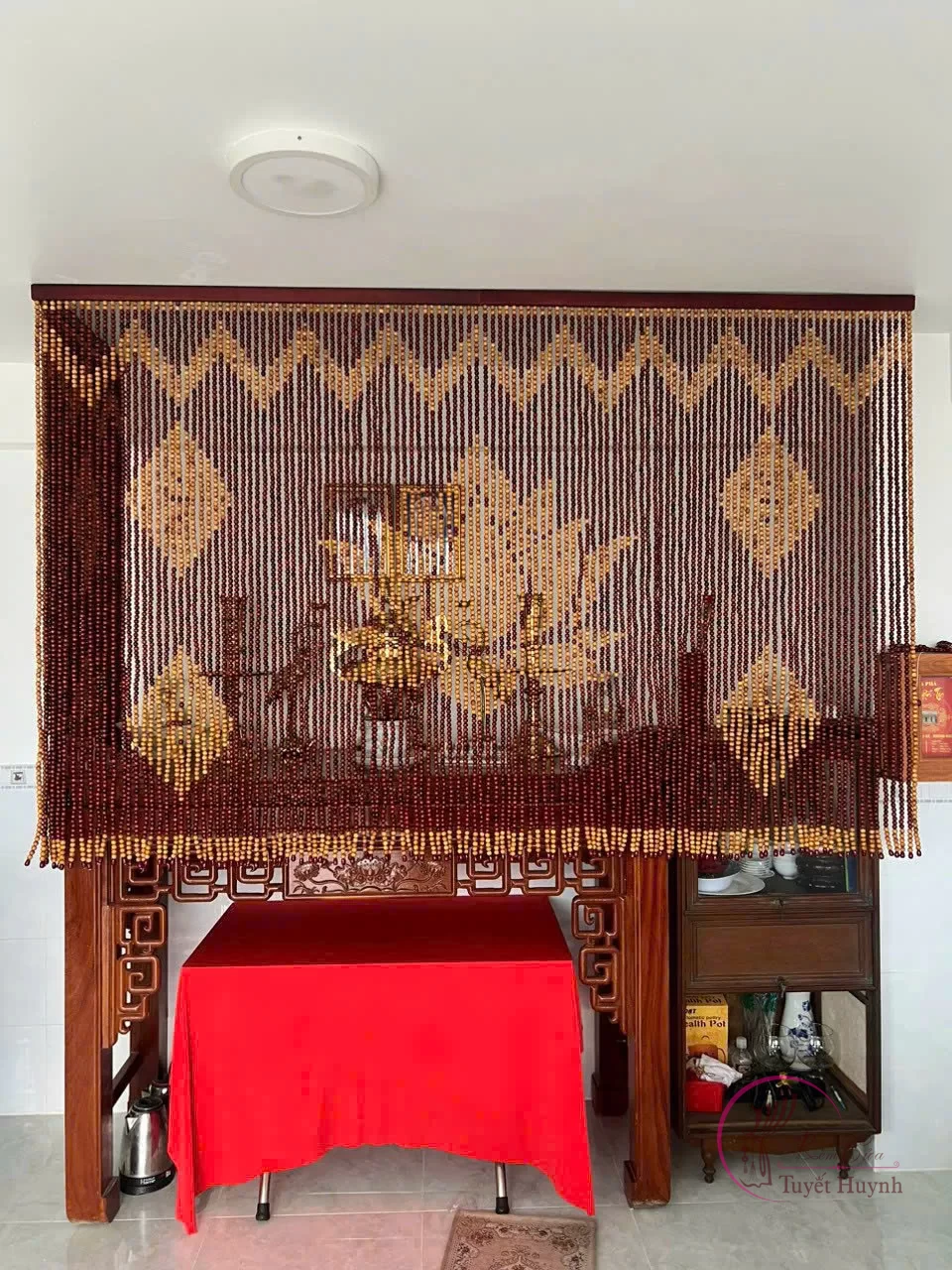 Thiết kế tinh tế: Rèm hạt gỗ thường được xâu thành từng dải dài song song, kết hợp theo nhiều kiểu dáng khác nhau: đơn giản, cổ điển hoặc nghệ thuật với các họa tiết uốn lượn, hình học.