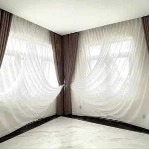 - Chất liệu cao cấp: Rèm được may từ các loại vải như polyester, cotton, linen hoặc nhung cao cấp. Lớp voan mỏng tạo cảm giác nhẹ nhàng, thoáng đãng; lớp vải dày mang lại khả năng cản sáng, cách nhiệt và chống bụi hiệu quả. Tất cả chất liệu đều thân thiện với sức khỏe và dễ vệ sinh.